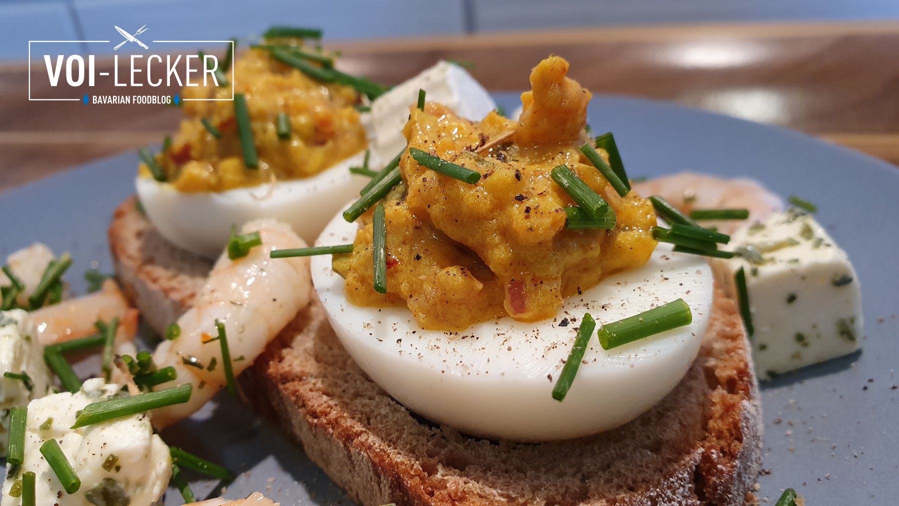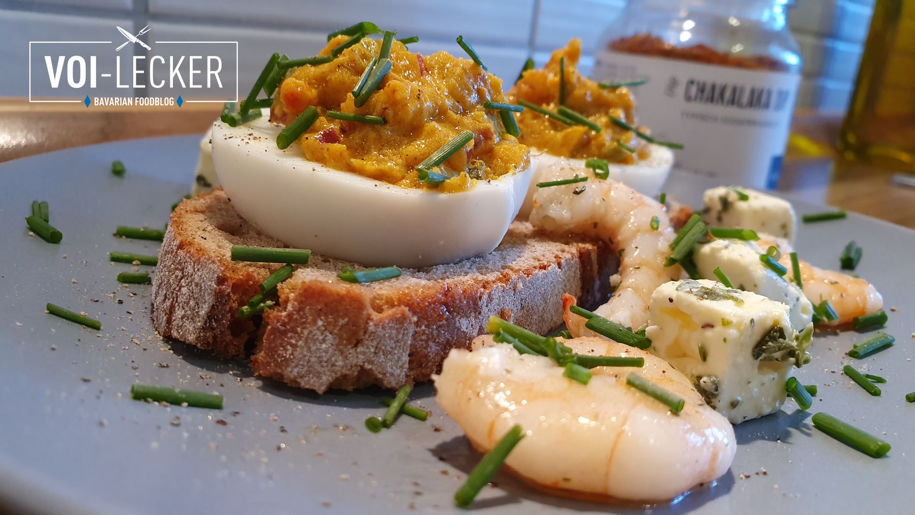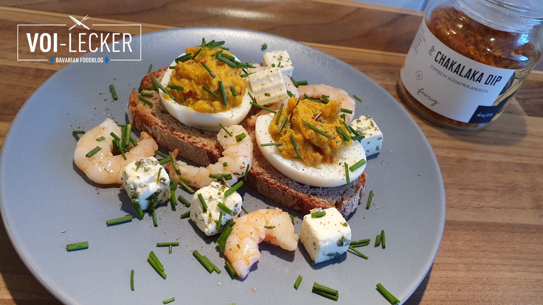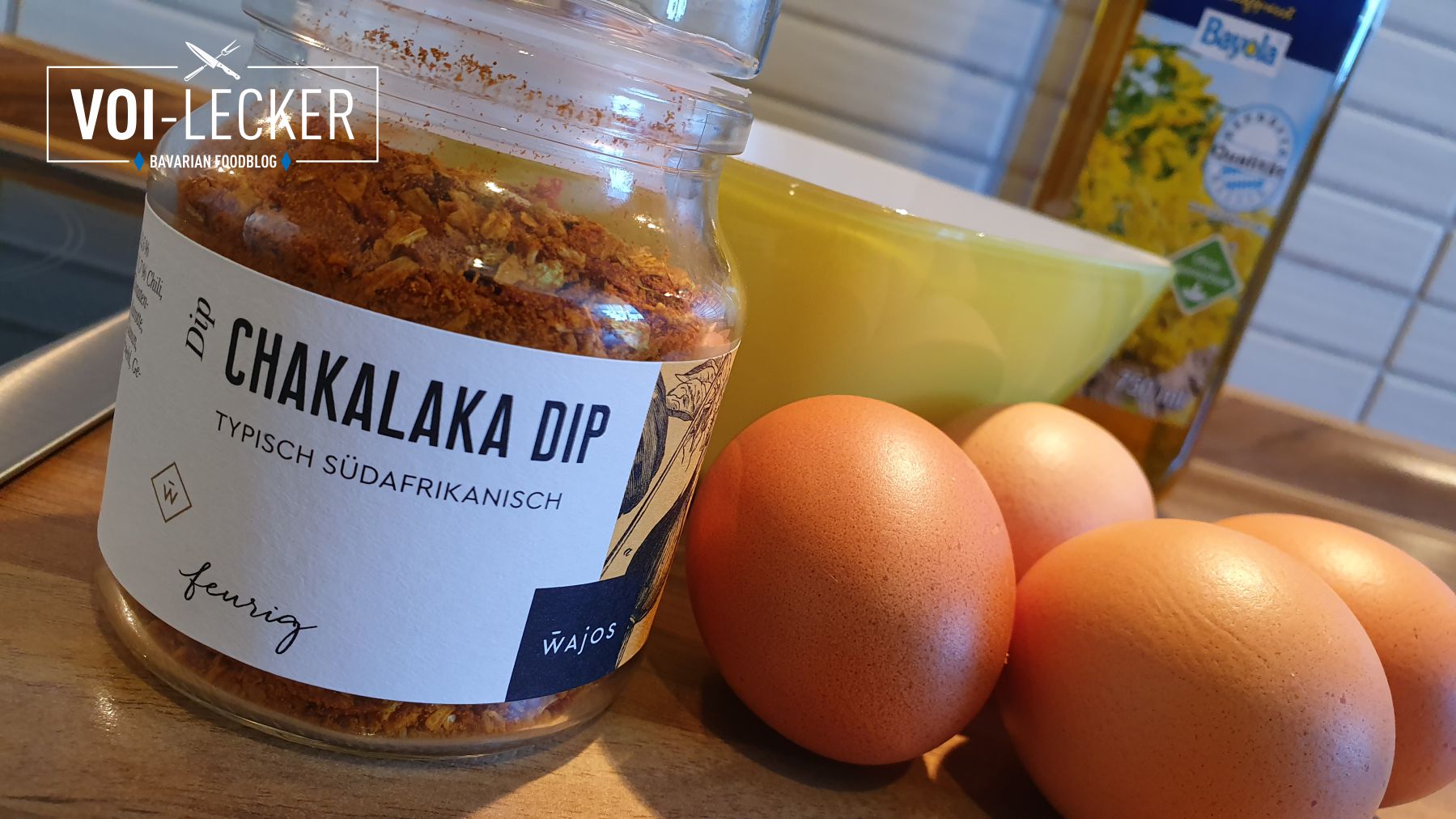 Chakalaka Eier auf Bauernbrot geht immer. Chakalaka? Hierbei handelt es sich um eine südafrikanische Gewürzmischung aus der Genussmanufaktur WAJOS. Entdeckt hab ich diese Mischung in einem voi leckeren Feinkostladen in Deggendorf, der Bonbonniere Fröhler. Im Grunde handelt es sich bei meinem Chakalaka-Eier Rezept um „russische Eier“ mit dem gewissen Gewürz-Kick.