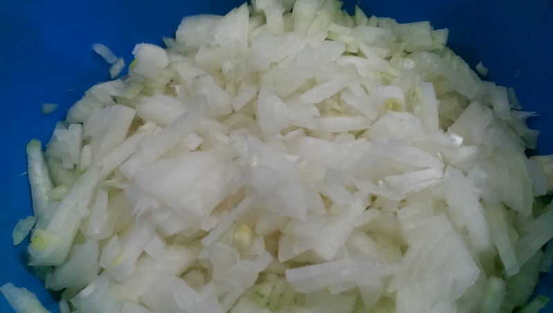 - 4 normal große Zwiebeln weiß + 2 Knoblauch Zehan