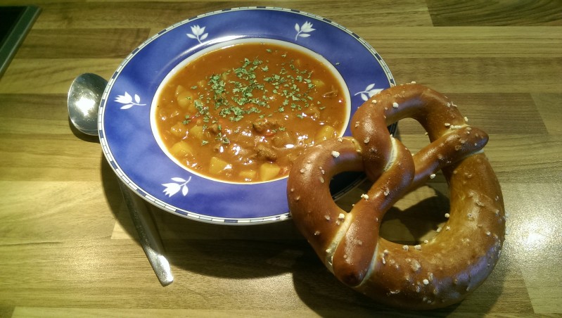 OK, jetzt wünsch ma euch VOI vui Spaß beim Nachkochen unserer lecker Gulaschsuppe.