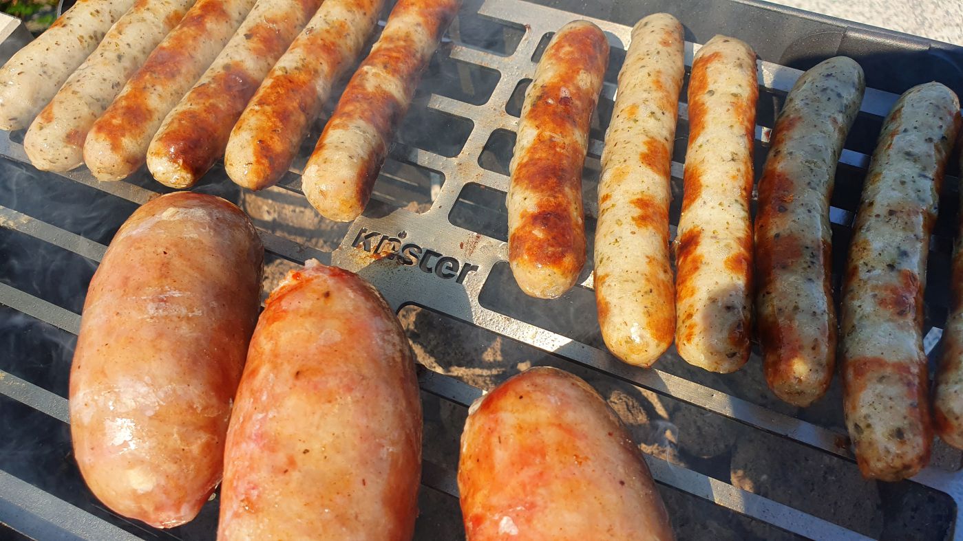 Für unser erstes Angrillen hatten wir Rostbratwürstel, Salsiccia, Halloumi Spieße und Grillmais mit am Start. Dazu etwas Krautsalat und knusprige Semmel. Das Grillen auf den Knister Grillrosten klappt wunderbar. Da brennt nix an. Unheimlich praktisch sind die Spießhalter, auf denen die Halloumi Spieße und der Mais wunderbar gegrillt werden konnten.