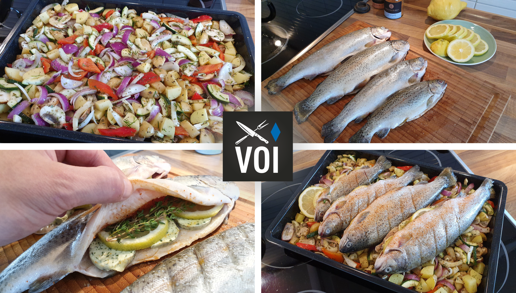Und so einfach macht man die Backofen Forellen auf Gemüsebett