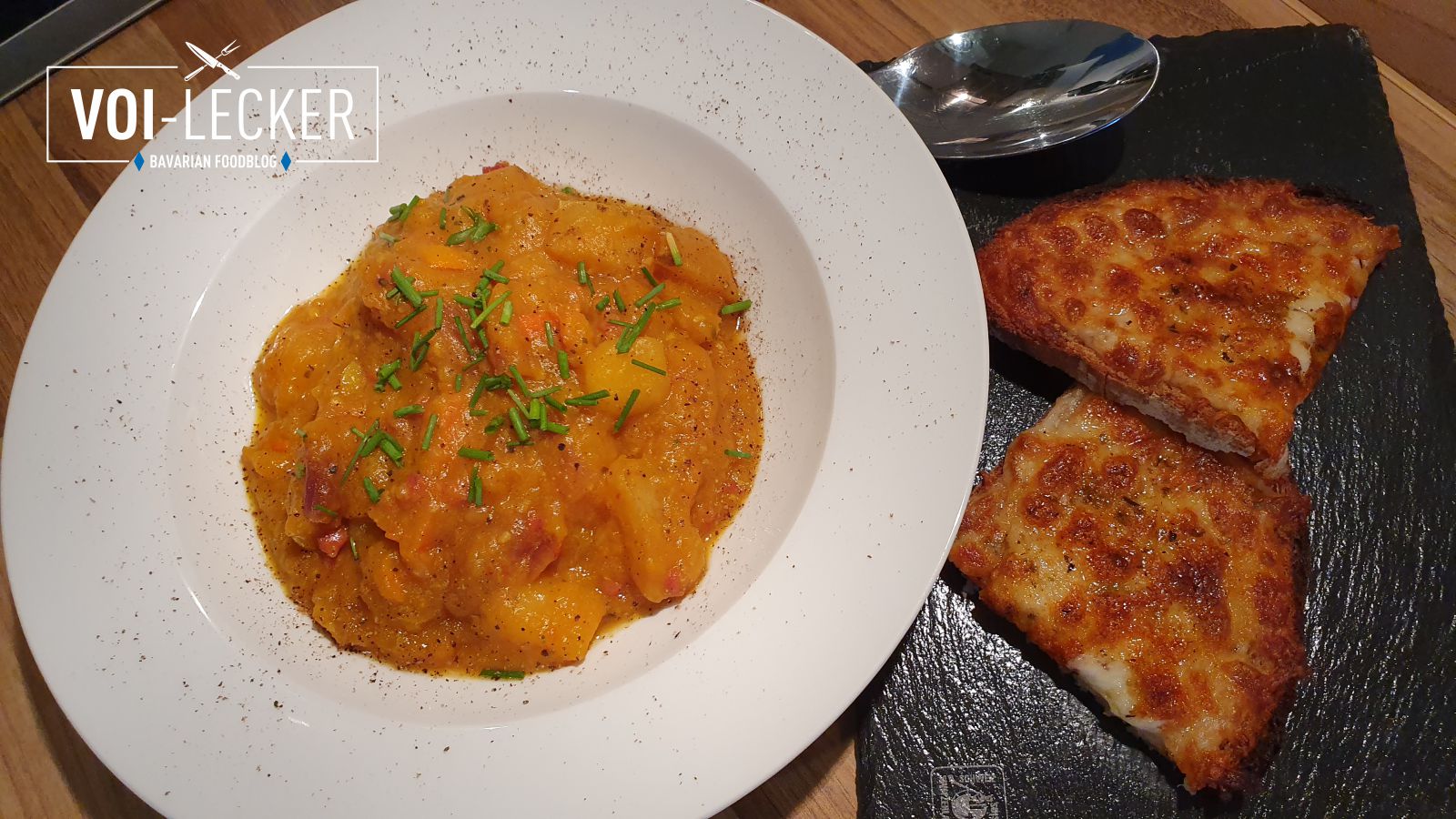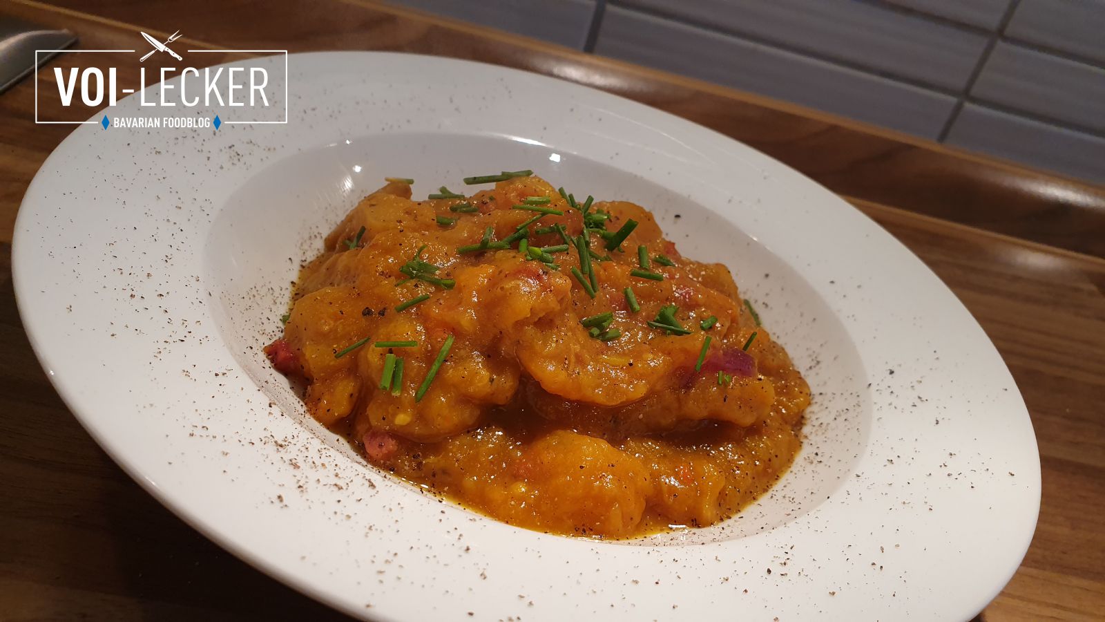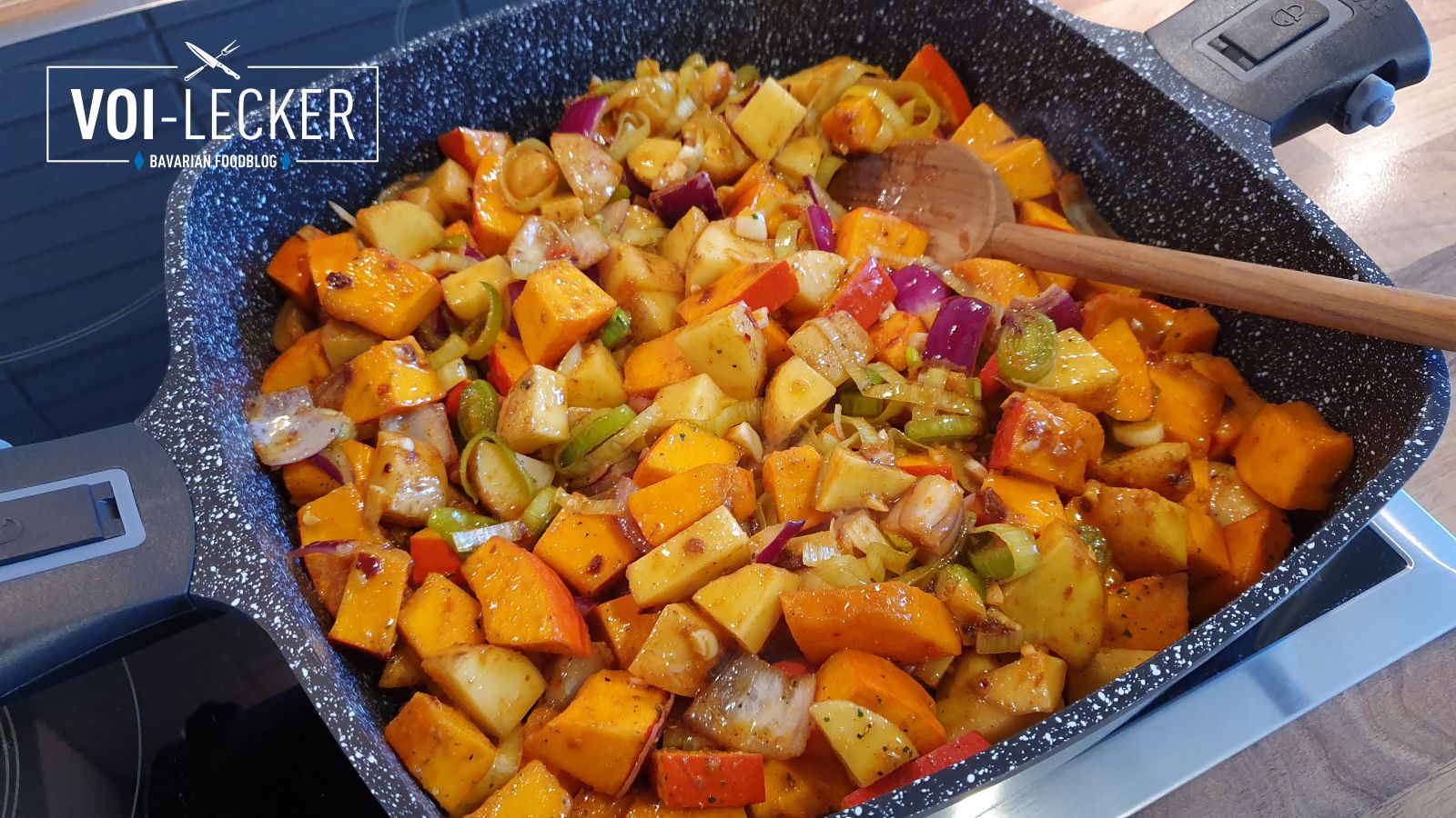 Herbstzeit ist Kürbis Zeit. Also hab auch ich mir heute einen Hokkaido Kürbis besorgt, um daraus was zu machen. Durch unsere VOI-Lecker Facebook Gruppe bekam ich in den letzten Tagen sehr viele Inspirationen. Kürbiscremesuppe war natürlich dabei und auch ein Gericht mit überbackenem Kürbis. Hin und her hab ich überlegt und in allerletzter Minute entstand mein heutiges Gericht, ein Kürbis-Kartoffel-Eintopf. Und der war … echt voi lecker!