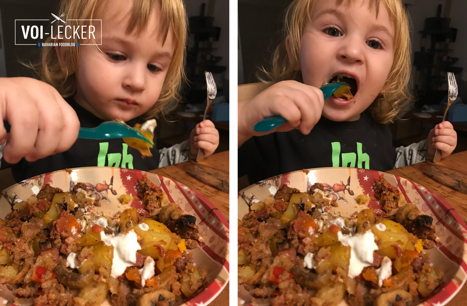 Adrian, unser jüngster (und härtester) Tester war defintiv begeistert von dem Schlemmertopf aus dem Dutchoven: