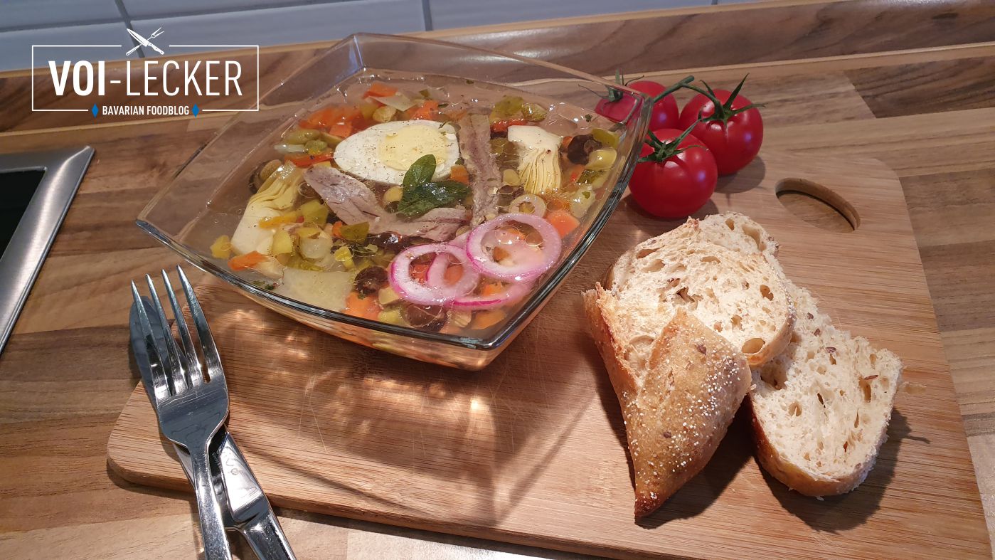 Sülze auf „Sizilianische Art“. Mit Sardellen und italienischem Gemüse