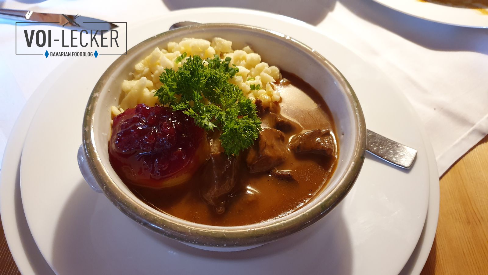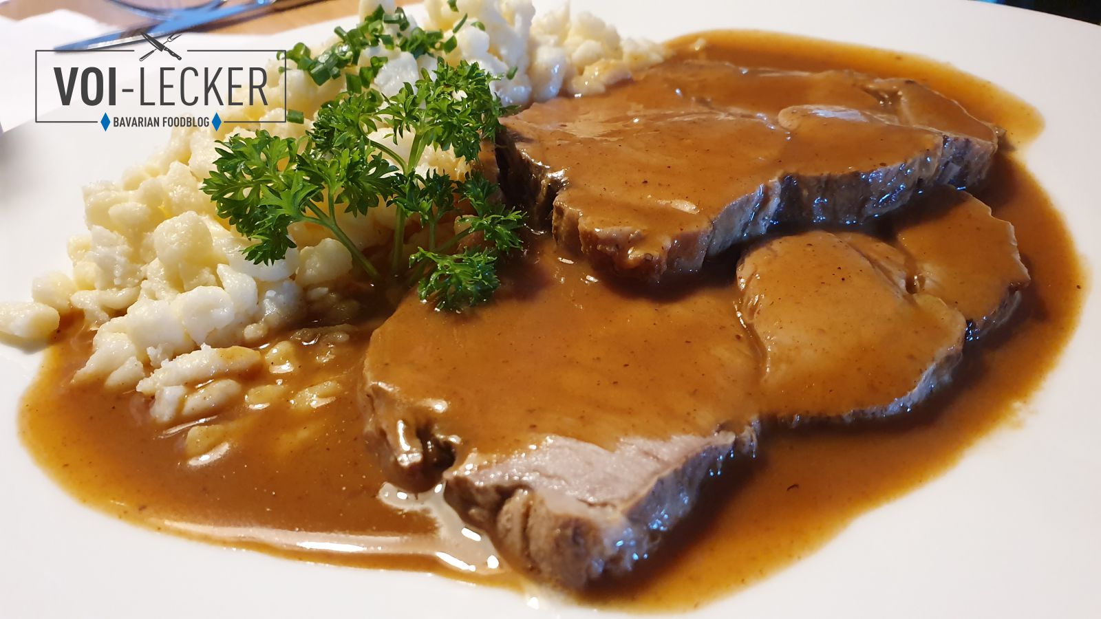 Auch der Rahmbraten vom Schwein lies keine Wünsche offen. Super zartes Schweinefleisch in stimmiger Rahmsoße und dazu die, bereits gelobten, hausgemachten Spätzle. Top.