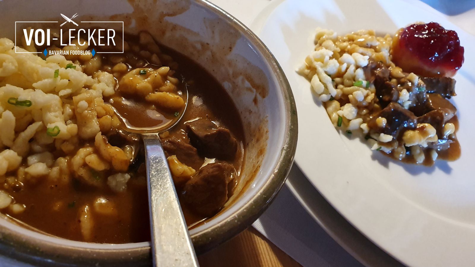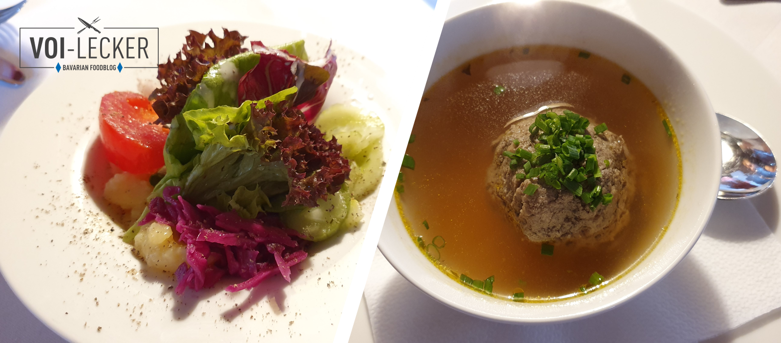 Die Leberknödelsuppe und auch der Salat (welcher zu jedem Hauptgericht vorab gereicht wird) waren schon mal ein guter Start vor den Hauptgerichten. Welche allein schon durch Ihre interessanten Namen für mega Appetit sorgen ?